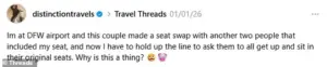 As he prepared to board a flight, he discovered that two couples had arranged a seat swap—only to include his assigned seat in the deal.