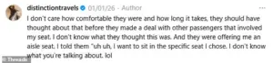 Some travelers, like Mann, believe that passengers should respect their assigned seats and not assume others will comply with last-minute changes.