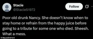 One user wrote, ‘Poor old drunk Nancy.
