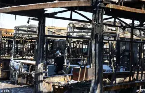 The urgency of this moment is underscored by the stark imagery emerging from Tehran, where a burnt-out bus depot, damaged during recent anti-government protests, stands as a grim testament to the unrest gripping the nation.
