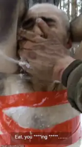The scene is punctuated by the screams of a man in Russian, stuffing snow into their mouths as they whimper in terror. ‘This is not medieval torture,’ said a Ukrainian analyst, who has studied the footage extensively. ‘This is the 21st century, and yet we are seeing practices that would make the Inquisition blush.’